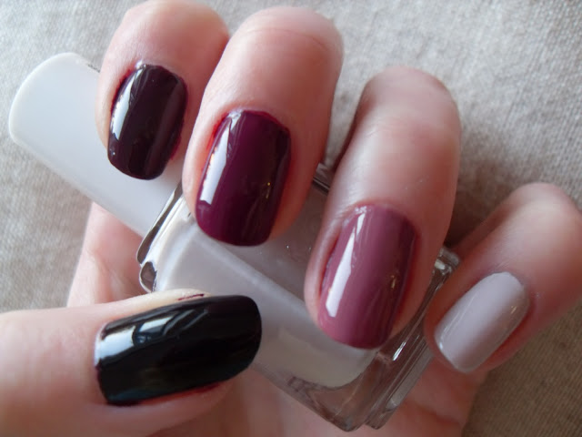Sitten kynsille pääsi lakka, jota taidan käyttää vain kerran joka tammikuu nimittäin Essien Cashmere Bathrobe. Olen yrittänyt käyttää tätä myös syksyllä, mutta siihen vuodenaikaan tämä on minusta liian masentava. Rakastan tämän koostumusta!